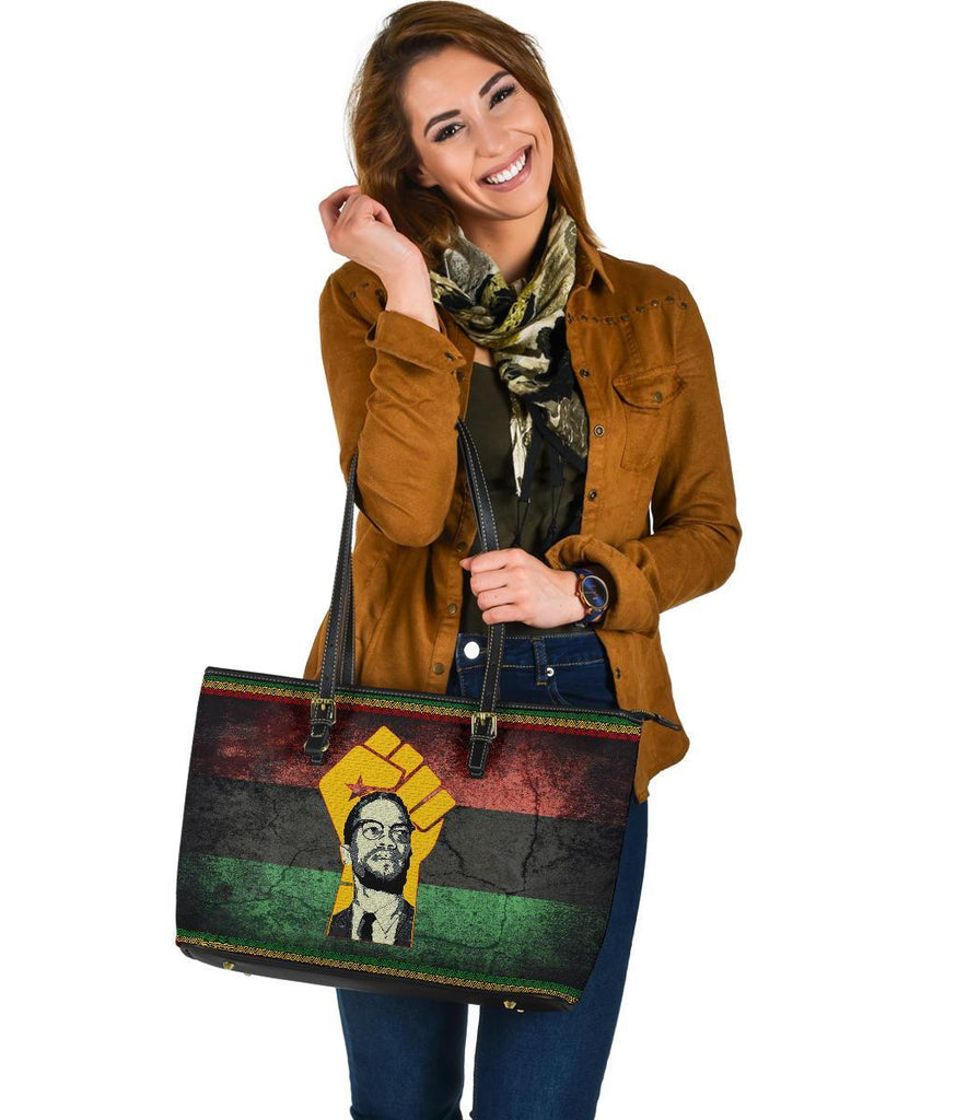 African Large Leather Tote Bag - MALCOLM X & Pan African-Flag - BN22