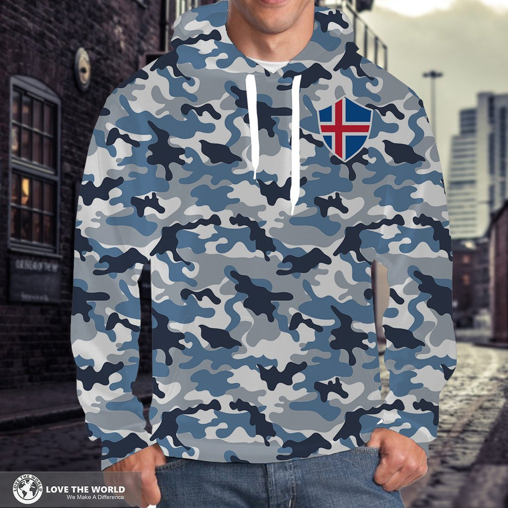 Iceland Hoodie - Camo Style Each hoodie is constructed from a premium polyester blend that is ultra-soft and incredibly comfortable. Features a specialty high definition heat-dye application that ensures long lasting color vibrancy even after machine washing. Fabric is durable and resistant to wrinkles, shrinking and mildew. Each Hoodie is...