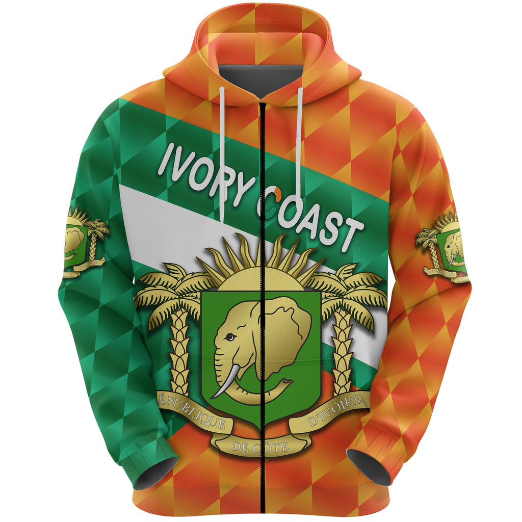 Ivory Coast Zip Hoodie Sporty Style Product Details: Polyester 94%, Spandex 6%, super soft Personalized classic-cut hoodie for Men and Women, comfortable and stylish Taped neck and shoulders for comfort and style Convenience to put on and take off for its zipper closure design Machine wash cold, tumble dry low...