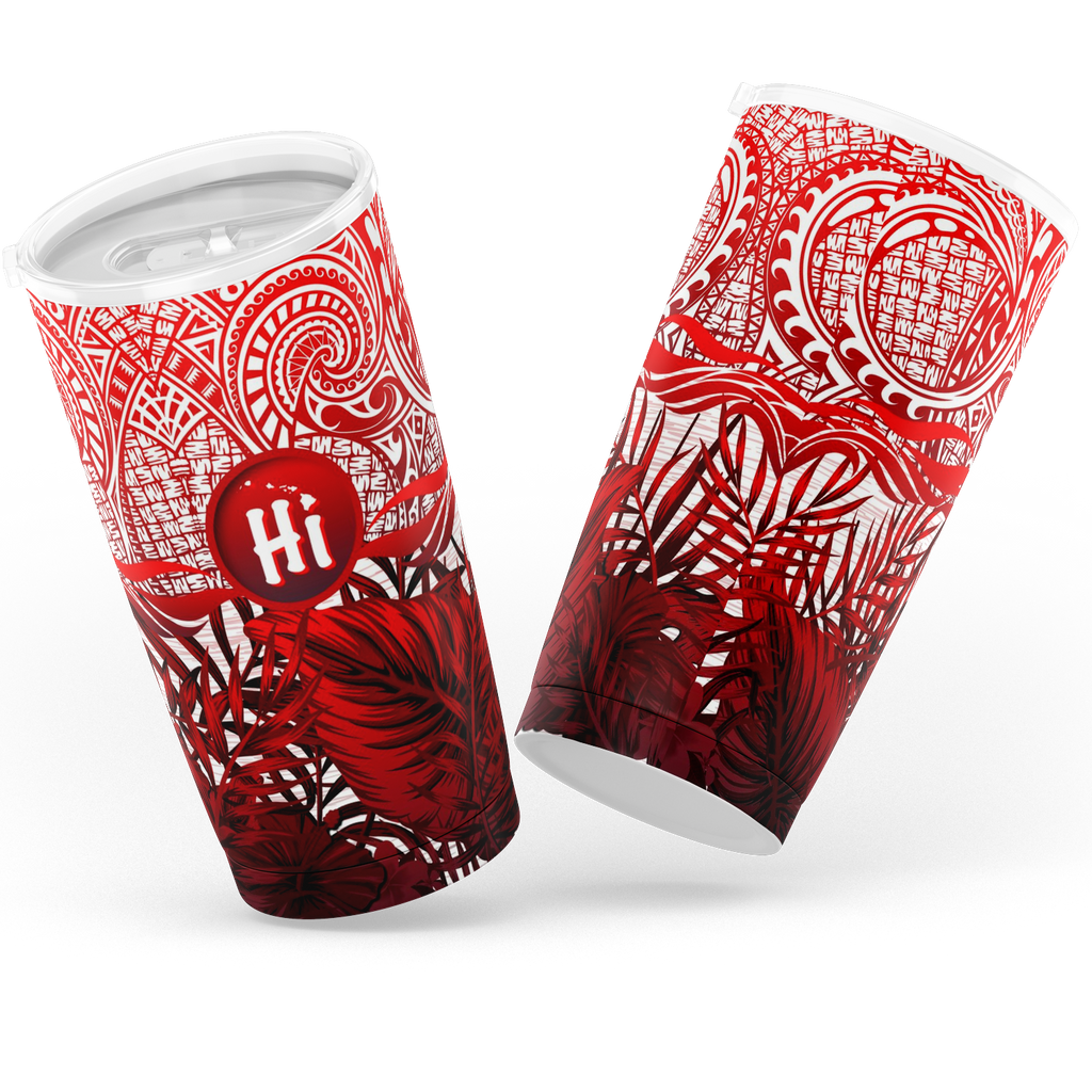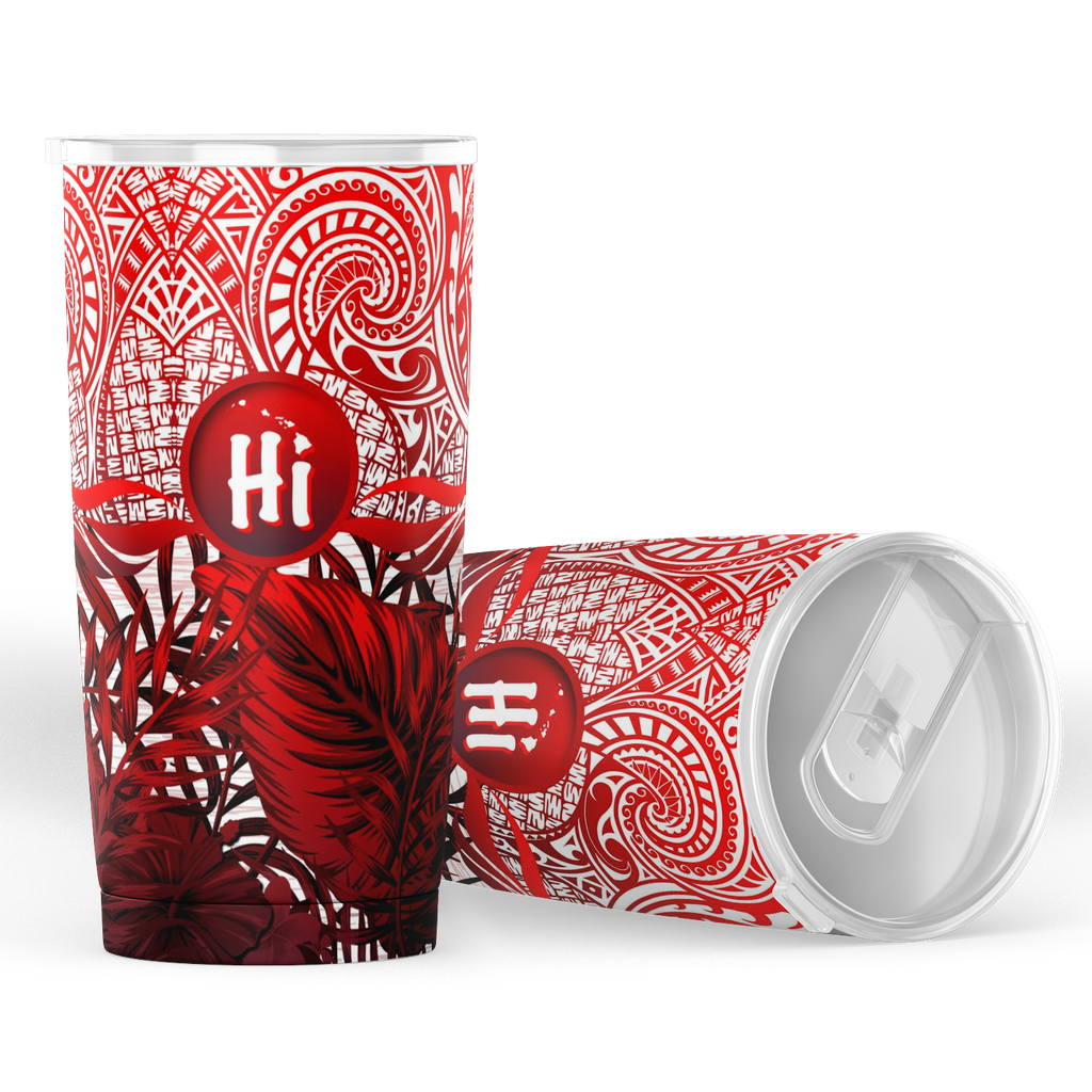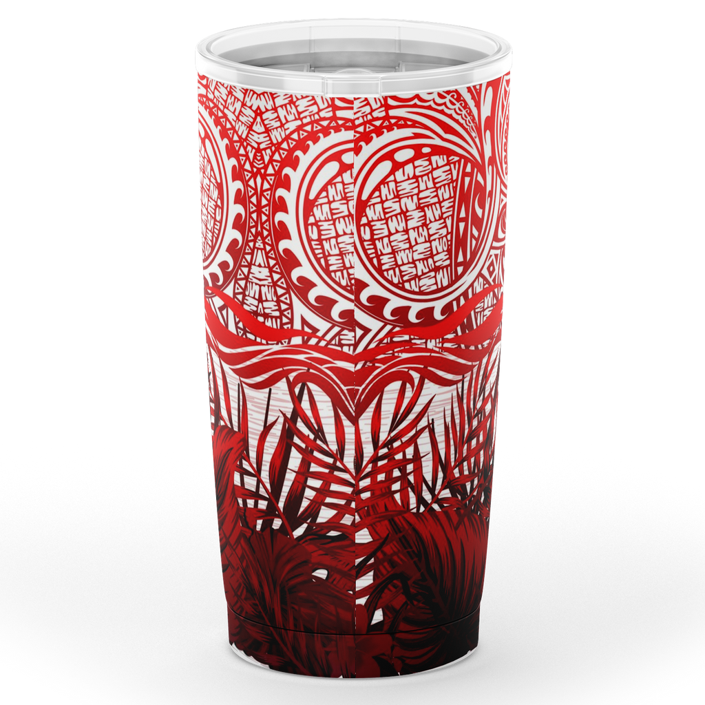 Kanaka Maoli (Hawaiian) Tumbler, Map Polynesian Palm Leaves Hibiscus Plumeria Flowers (Red) | Love The World This 20oz Tumbler is double-walled, vacuum insulated stainless steel, that comes with a splash-proof slide lid that will keep your drinks at the temperature you want. With a superior finishing inside and outside, your tumbler...
